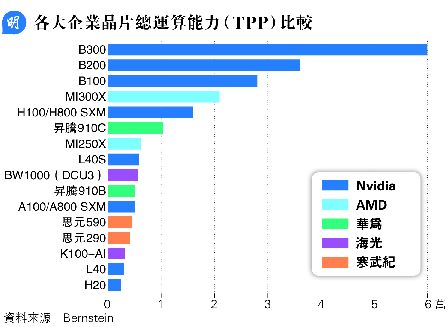 若以目前数据看,华为及一众中资晶片厂的产品能力,似乎仍与Nvidia有不小距离。据股市研究公司Bernstein资料,以总运算能力(TPP)计,Nvidia产品能力仍问鼎全球,由旗下B100、B200、B300三兄弟垄断头三名。华为最强的产品910C只能屈居第六,总运算能力与Nvidia的王牌产品B300相差近5倍,与第四位AMD的AI300X亦差1倍。Bernstein估计,今年中国AI加速器市占率仍由Nvidia主导,占54.4%;其次华为占27.9%,约为Nvidia一半。其馀AMD、海光讯息、寒武纪、阿里巴巴旗下的平头哥半导体等各占2.5%至3.9%。不过,黄仁勋多番点名华为,认为对方将急步追上Nvidia,从不敢小觑对方实力。黄仁勋今年7月访问北京时向传媒表示:「实际上,任何低估华为、低估中国制造能力的人,都是极其天真无知的,华为是一家非常强大的公司,我以前见过他们开发出的技术。」