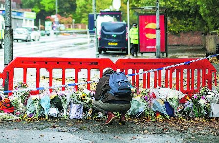 有民?昨在英国曼彻斯特发生恐袭的犹太教堂附近摆放鲜花,哀悼受害者。(路透社)