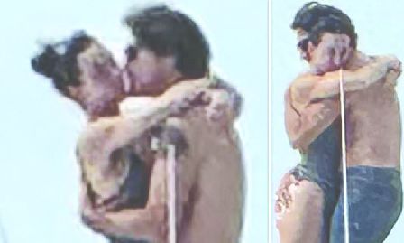 照片中,佩里身穿深色泳衣,与杜鲁多在她游艇上亲密拥抱、热吻。