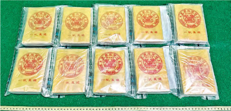 香港海关昨日(7日)在香港国际机场破获一宗旅客贩运毒品的案件,检获约3.8公斤怀疑海洛英,估计市值约190万元。(政府新闻处)