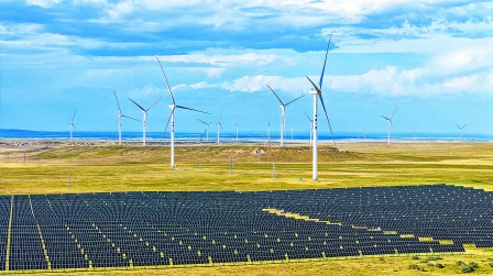 图为新疆阿勒泰地区吉木乃县的风力发电场。中国新增的再生能源发电量领先全球,反之欧美等发达国家依赖化石燃料发电不减反增。(新华社)