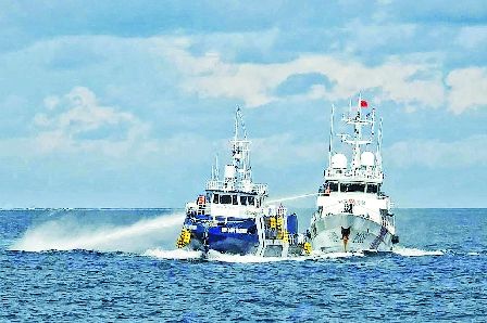 【明报专讯】中菲在南海冲突持续,中国海警局昨(12日)称,两艘菲律宾公务船未经允许非法闯入南沙群岛铁线礁附近海域,并无视多次严正警告危险接近中方正常维权执法的海警导致发生擦碰。菲律宾则指控,中方向菲公务船发射水炮,并刻意冲撞菲方船舶船尾,此举是「明显的威胁」,马尼拉将提出外交抗议。