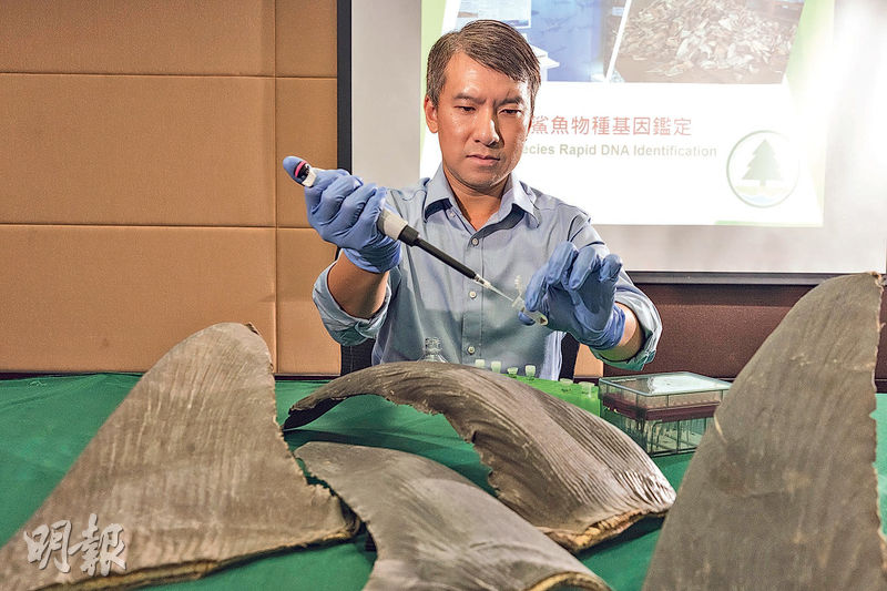渔护署濒危物种保护主任佾x??欣表示,署方去年底引入新技术,快速鉴定鲨鱼基因,每个鱼翅样本最快两小时有结果,能加快执法和调查工作。(冯凯键??o?J??