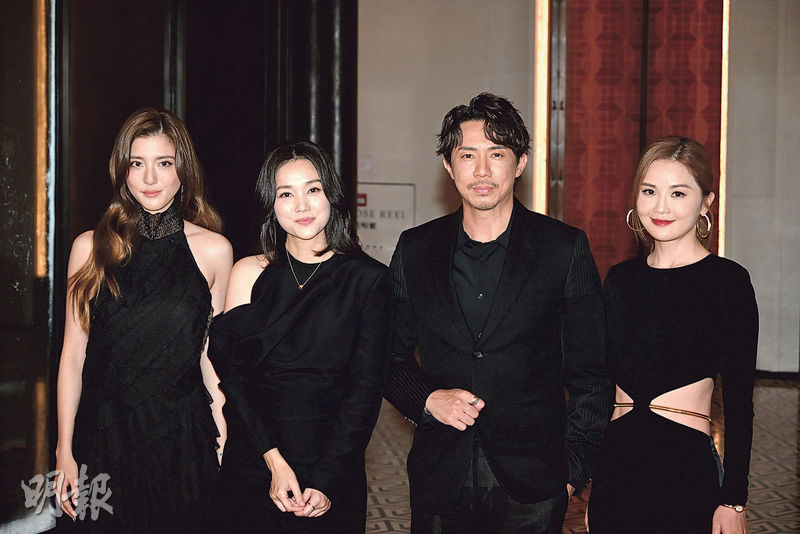 吴千语(左起)、谢安琪、张继聪和蔡卓妍到场贺一对新人。(摄影:锺伟茵)