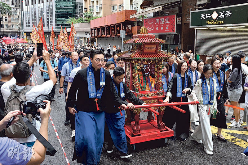 出巡队伍噚日朝早10点半由上环文化广场出发,途经摩利臣街、皇后大道中及水坑口街,最终抵达荷李活道文武庙;到中午时分,庙内举行第69届秋祭大典。呢个祭典系其中一个香港非物质文化遗产,延续?自1957年以来?传统礼制,为香港祈福。主祭者同东华三院全体董事局成员依照传统著上长袍玄褂行礼。